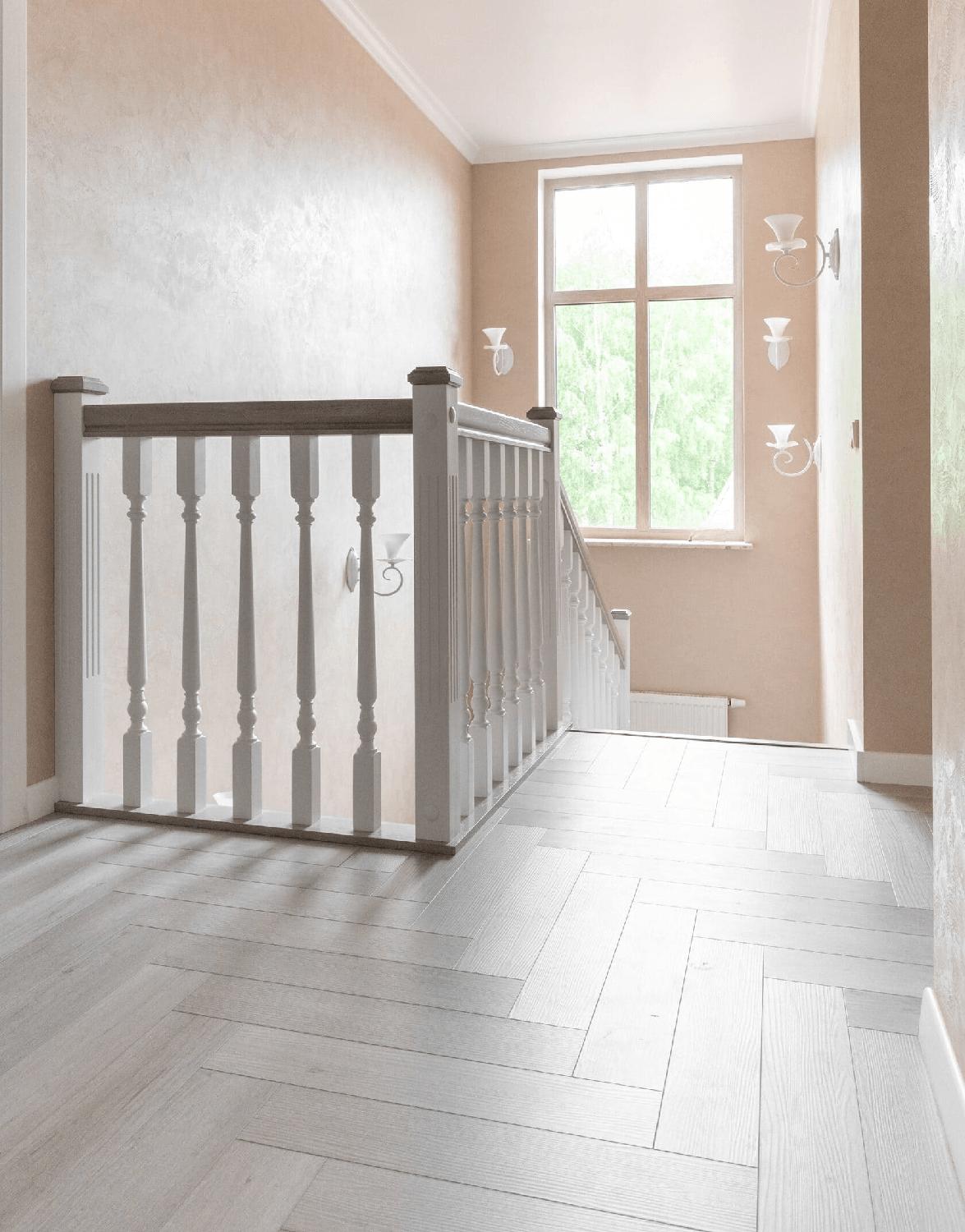 Ограждение с классическими резными балясинами, их рисунок параллелен поручню