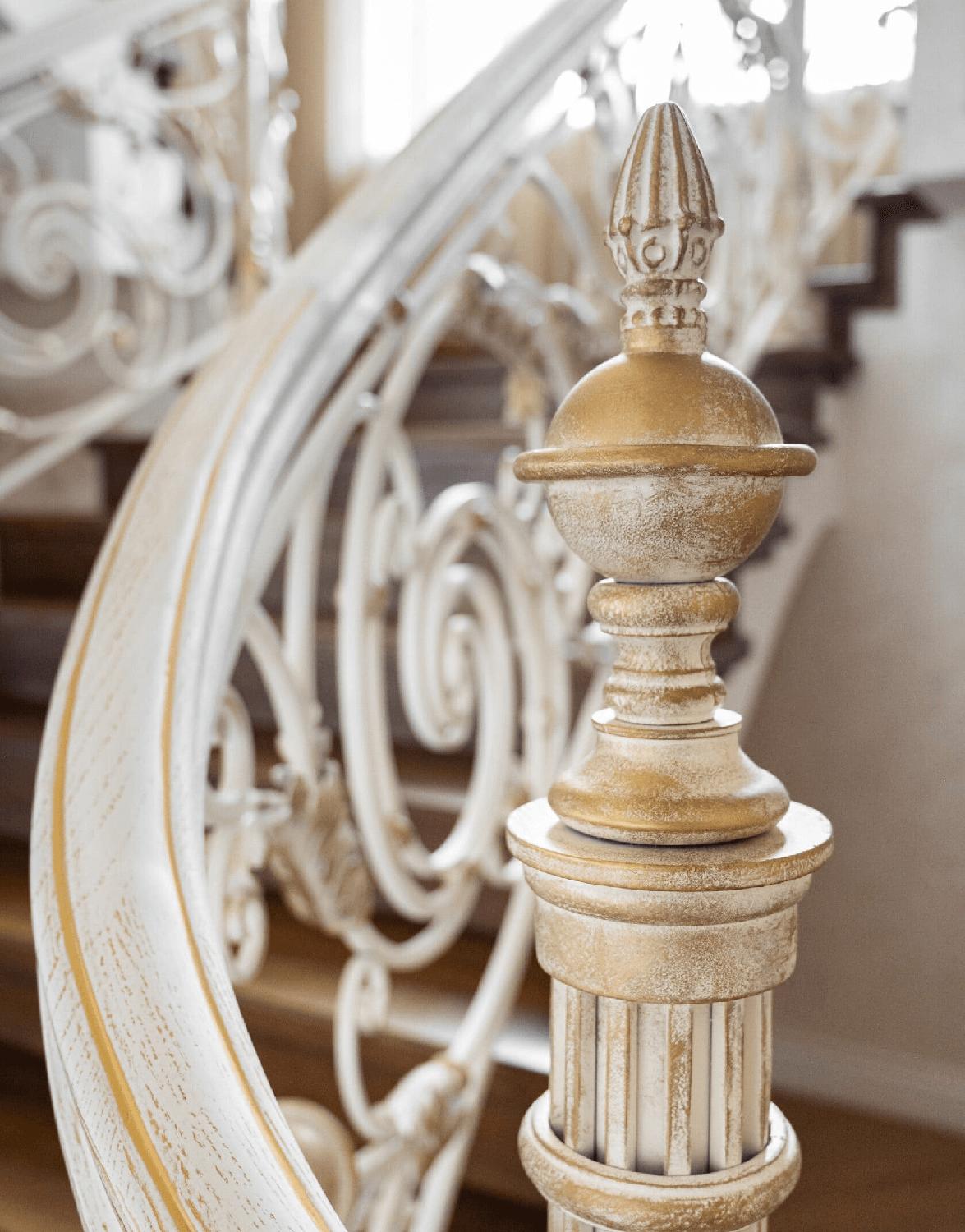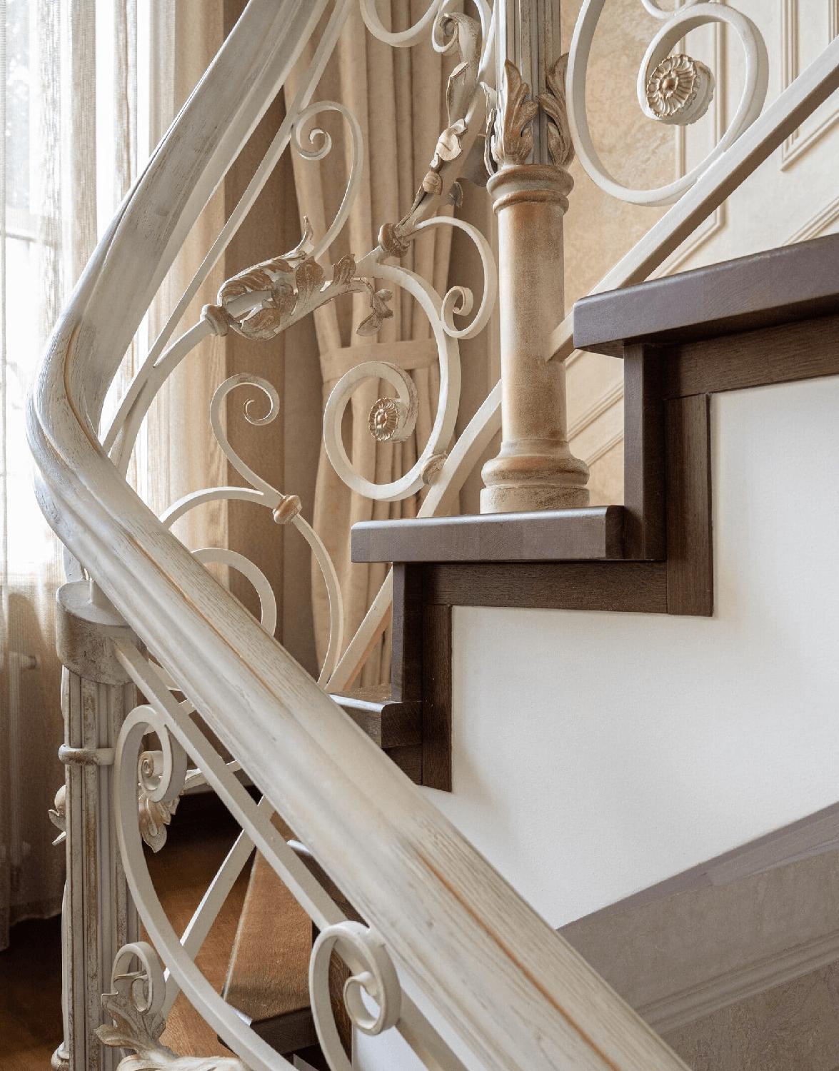 Ограждение с художественной ковкой и гнутым патинированным поручнем