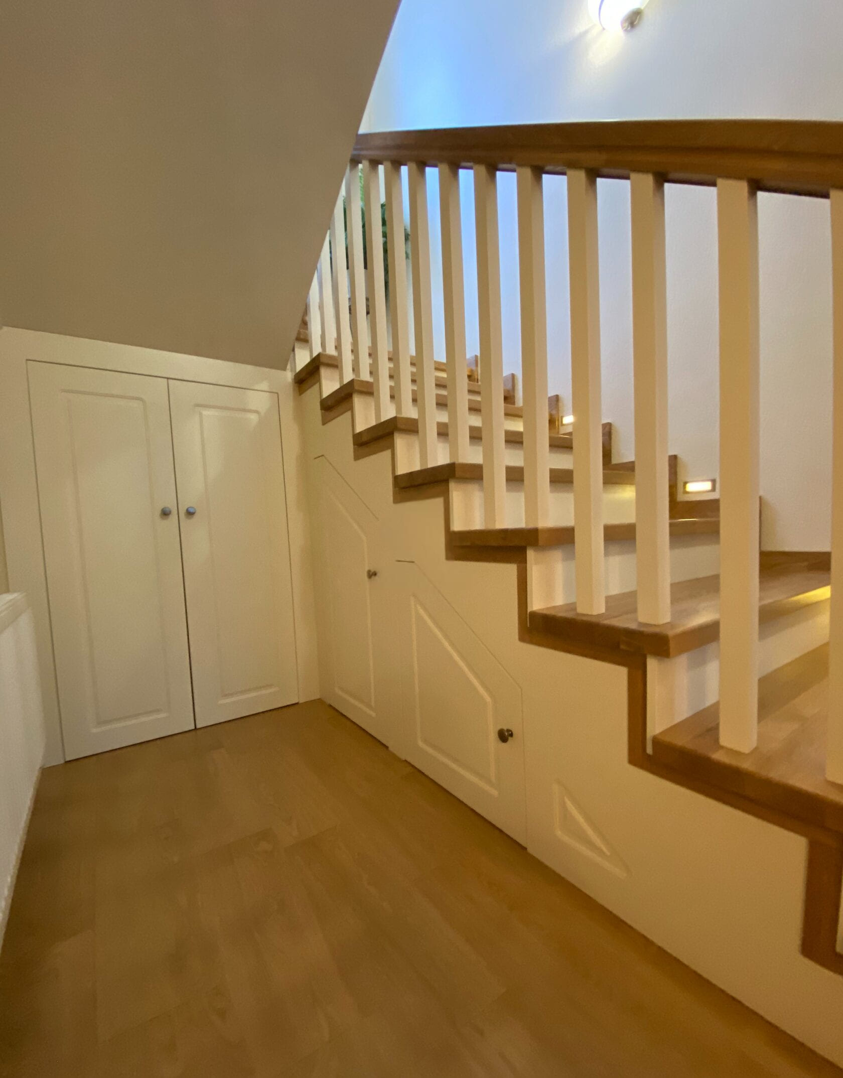 Подступенки и фальштетива у стены из МДФ.