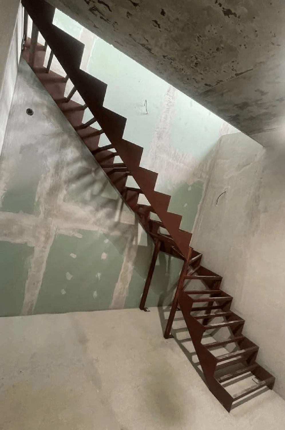 Металлический каркас лестницы закрытого типа из листа металла 8 мм.
