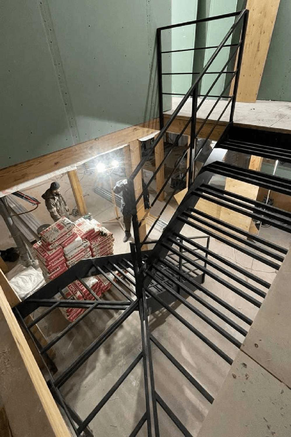 Металлический каркас лестницы закрытого типа из листа металла 6 мм.