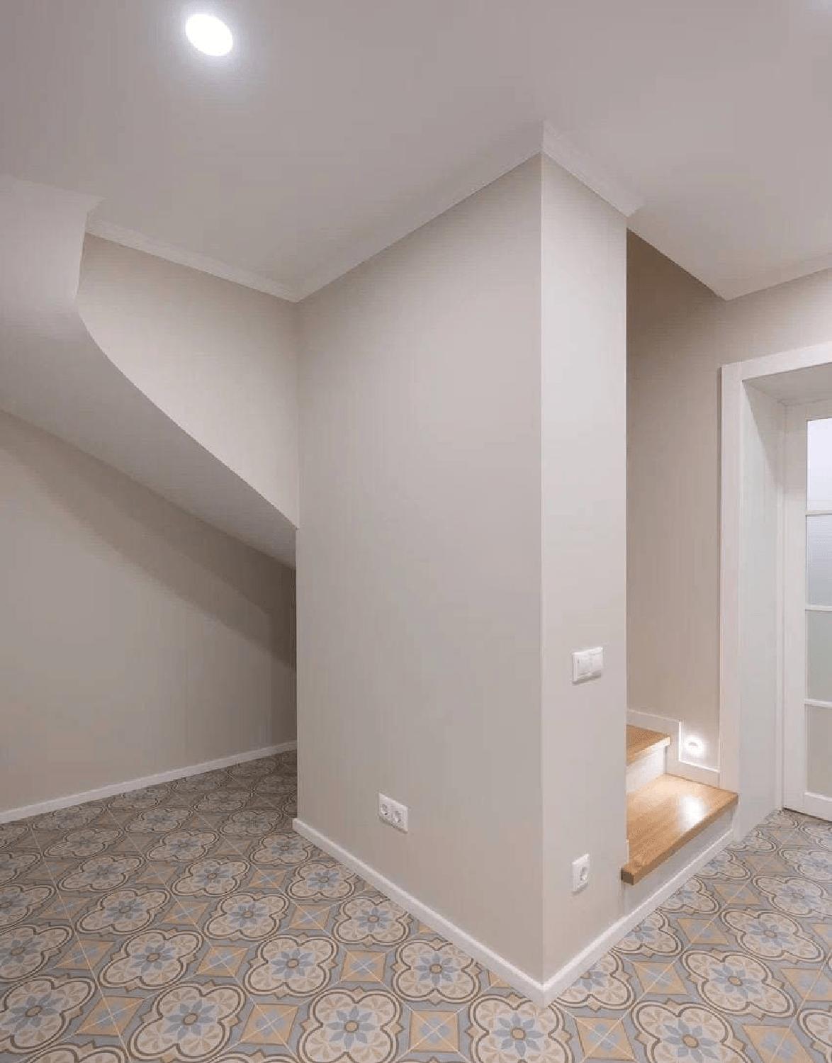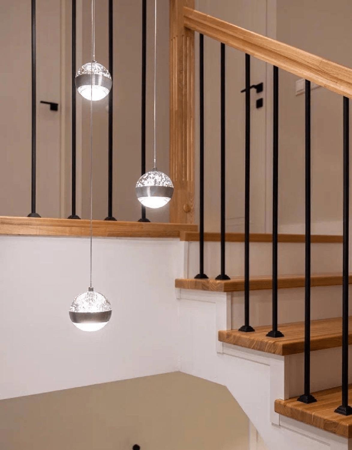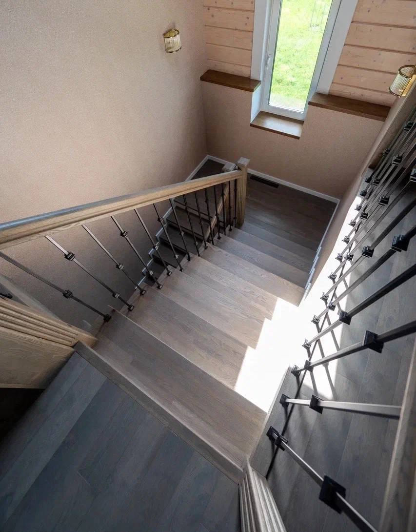 Лестница на металлическом каркасе с первого на второй и небольшая в цокольный этаж.